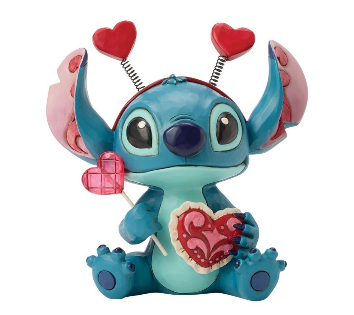 Maak kennis met de onweerstaanbare charme van Stitch in dit prachtige Enesco Jim Shore-beeldje! Met een schattige haarband voorzien van een hartje en een hartvormige lolly in zijn hand straalt hij pure liefde uit. In zijn andere hand houdt hij een fraai gequilt hart met verfijnde motieven vast. De herkenbare rosemaling-accenten op zijn oren geven het geheel die typische Jim Shore-uitstraling en zorgen voor extra karakter.